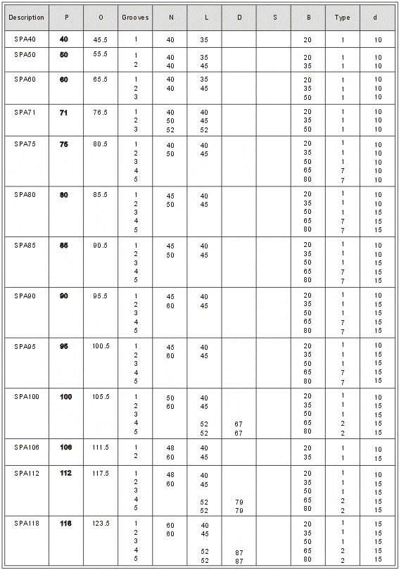 Description P 0 Grooves N L D S B Type   d